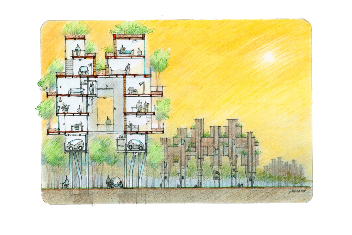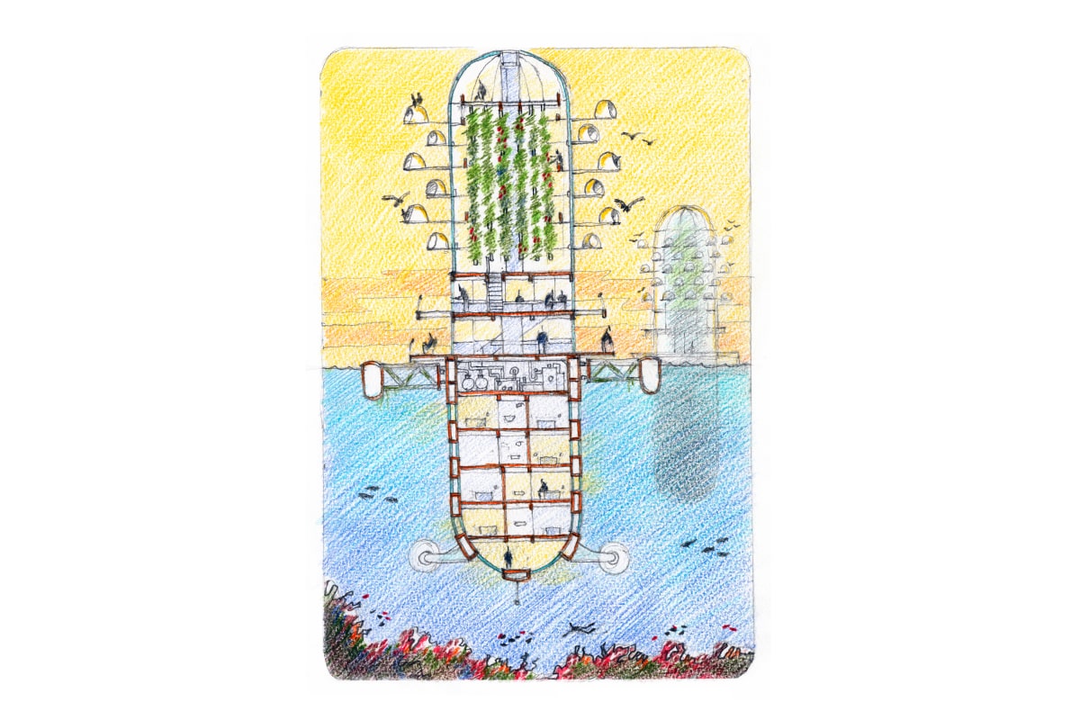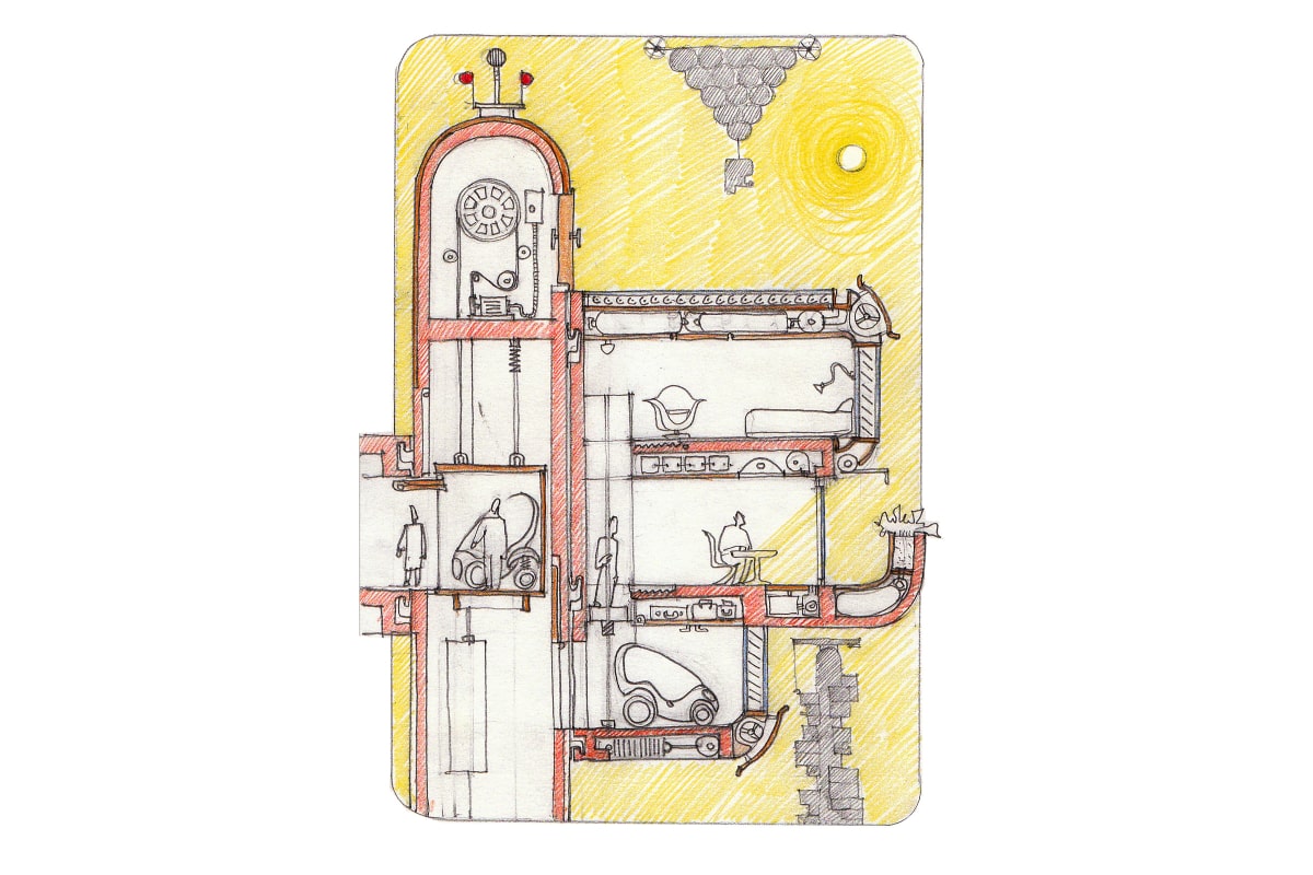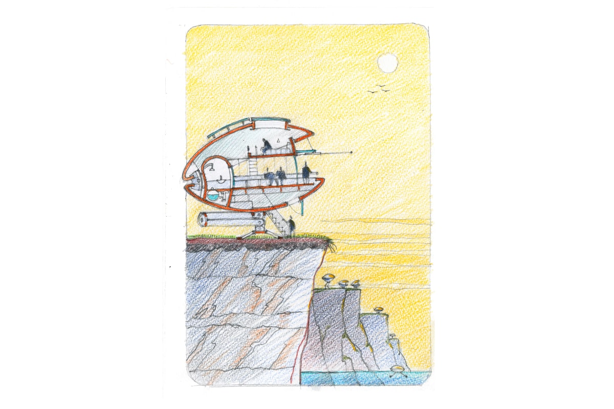 От години рисувам през ваканциите си тези архитектурни фантазии на фона на жълти небеса. За мен това винаги е било възможност да се откъсна от действителността и да разсъждавам – освободен от ограниченията в практиката – чрез рисунките си. Много от тези образи са създадени на плажа, което обяснява тяхната жизнерадостна енергия. От друга страна, голяма част от рисунките изобразяват решения, които са резултат от моите научноизследователски занимания, затова са теоретично построими и приложими.